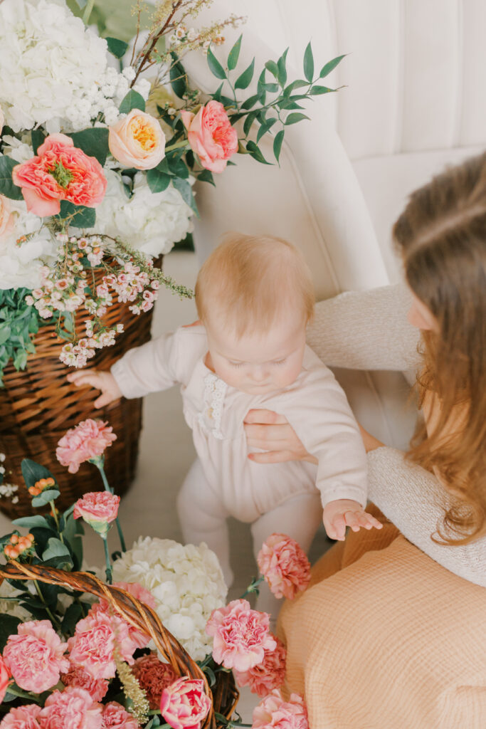 Hosted last April at Skye Studio in Ottawa, these Mother’s Day mini sessions were thoughtfully designed to bring the feeling of spring indoors — offering families a calm, light-filled environment at a time of year when Ottawa is often still caught between seasons.