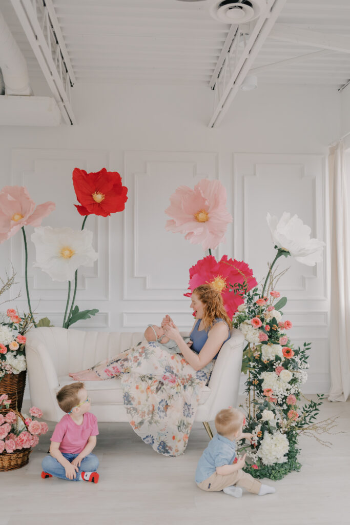 Families were genuinely surprised by the set design — especially when they learned that the oversized flowers were handmade. Some had followed along as I shared glimpses of the creative process on social media without seeing the final result.