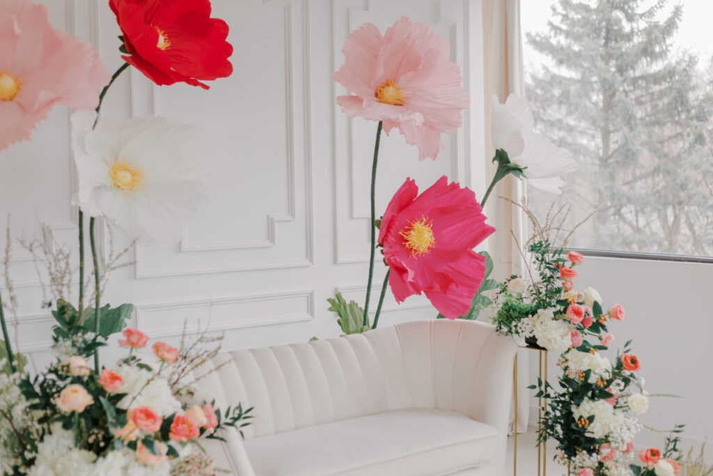 I wanted to create something different — something I hadn’t seen done in Ottawa before. I love crafting and creating by hand, and after coming across oversized paper flowers, a soft, garden-inspired vision began to take shape.
